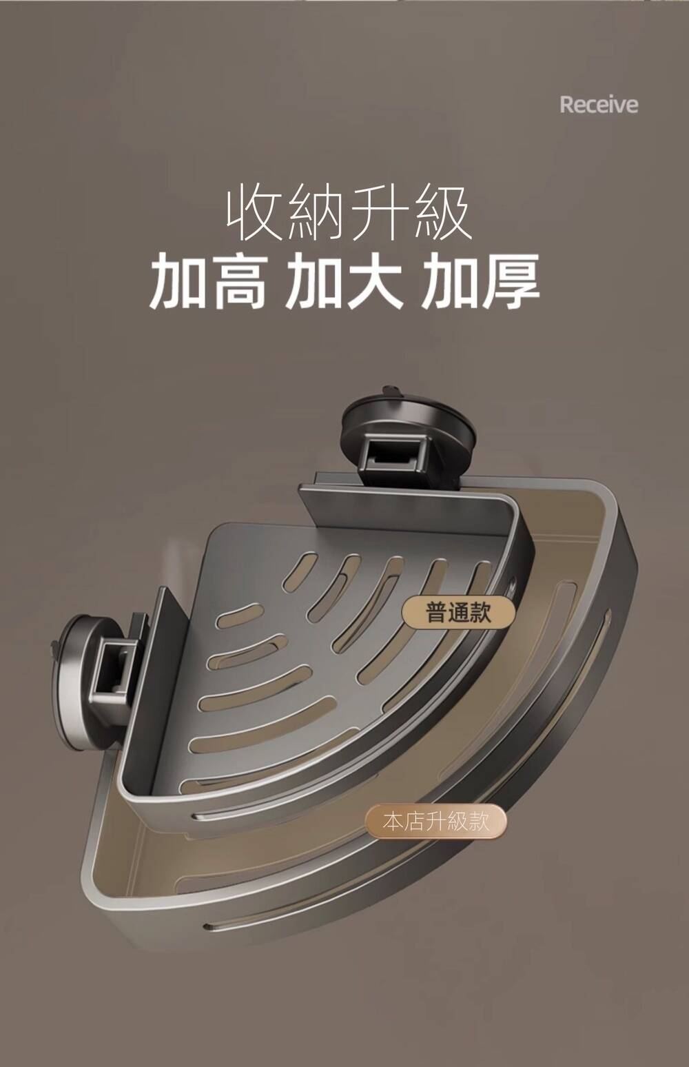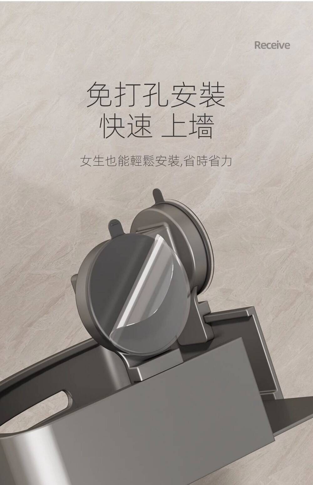 12分鐘前自帶吸盤,可隨時移動重復使用的置物架 免打孔廚房浴室衛生間三角置物架多用途壁掛收納架毛巾架 - 【超夯下殺】買一送二,共三入組 NT$998