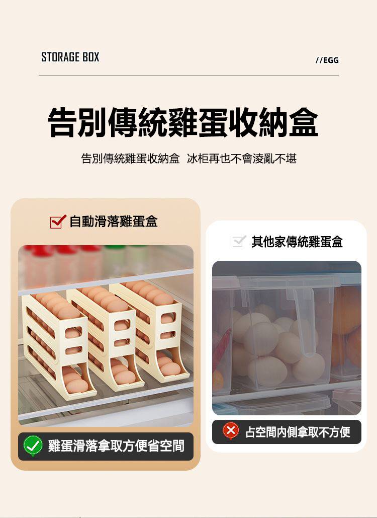 25分鐘前自動滾蛋式雞蛋收納盒 - 3入组(可放90個雞蛋)NT$1098