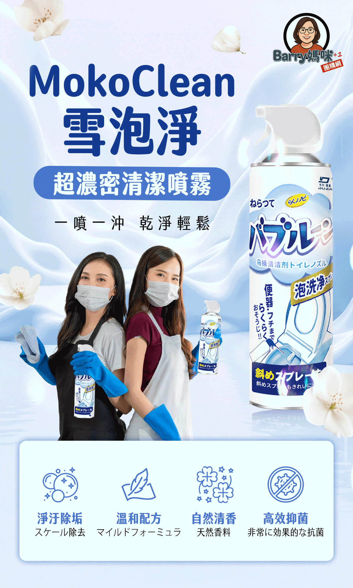 12分鐘前媽咪團購第三彈開跑!#雪泡淨浴廁清潔慕斯 馬桶不刷也能亮 ! 浴室清潔一瓶搞定! - 【買三送二】【MokoClean雪泡淨】5入組,細緻泡沫滲透每個角落 免運 NT$990