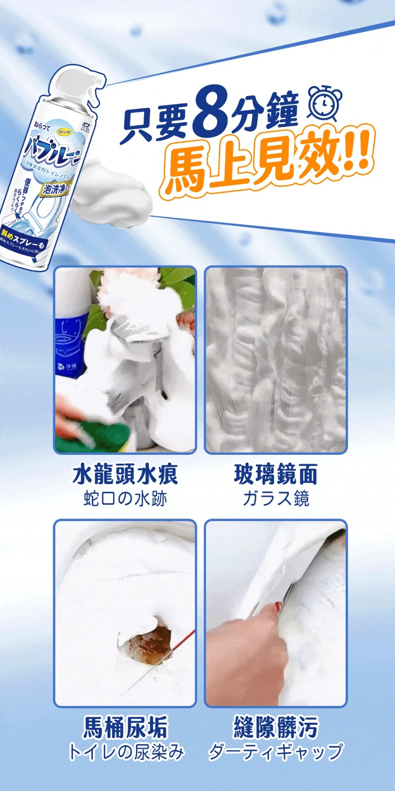 4分鐘前媽咪團購第三彈開跑!#雪泡淨浴廁清潔慕斯 馬桶不刷也能亮 ! 浴室清潔一瓶搞定! - 【買五送三】【MokoClean雪泡淨】8入組,團購好友分享 免運 NT$1299