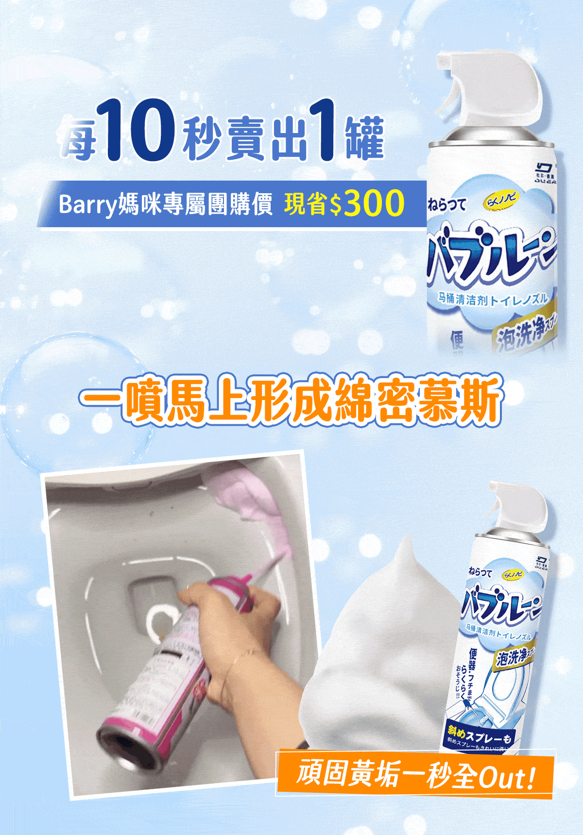 2分鐘前媽咪團購第三彈開跑!#雪泡淨浴廁清潔慕斯 馬桶不刷也能亮 ! 浴室清潔一瓶搞定! - 【買三送二】【MokoClean雪泡淨】5入組,細緻泡沫滲透每個角落 免運 NT$990